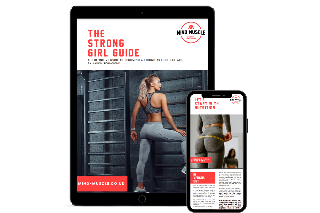 Download your copy of The Strong Girl Guide - The definitive guide for women on how to stop fad dieting, train properly and finally get that dream bikini body.